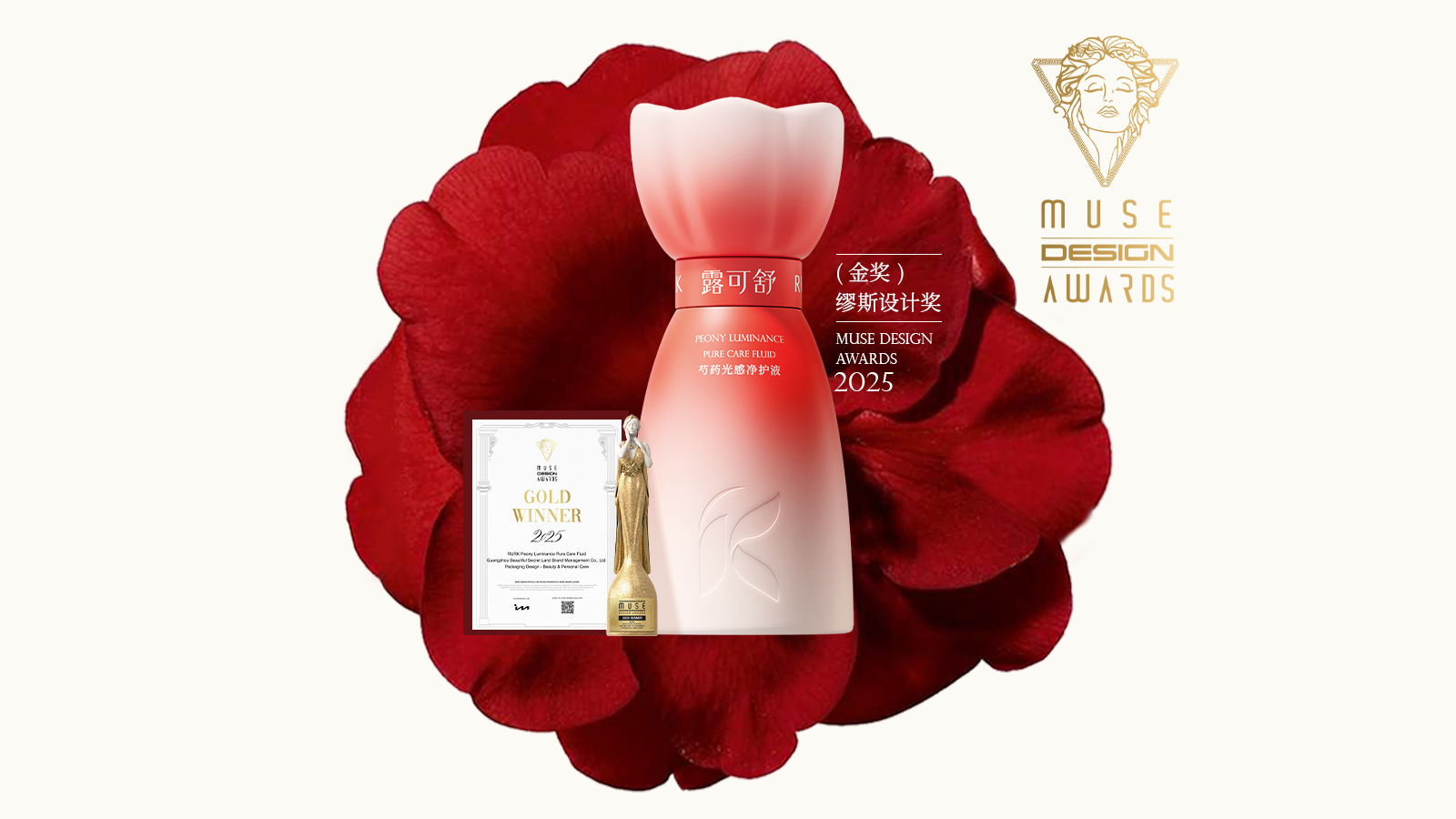 在产品落地层面,露可舒将“东方植愈”理念贯穿始终。以品牌升级后推出的四款王牌产品为例,芍药光感净护液选用东方芍药为核心成分,实现“净+ 抑+ 润”三合一功效,24小时根源祛异味的同时,还能通过8D莹润配方养护私处肌肤;雪莲乳酸净护露则针对敏感肌人群,以雪莲植萃舒缓黏膜,搭配科学乳酸成分平衡菌群,抑菌率高达99.9%。这些产品不仅通过了13项权威报告验证,更在包装设计上斩获2025年美国【MUSE】设计金奖,兼顾“功效”与“体验”,真正做到“无功效不上市”。